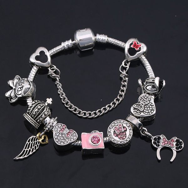 3 мм змея цепи + сплав бусины + стеклянные бусины + кулон + цепь безопасности; браслет длина: 16-21 см; покупатели, которым нужны другие браслеты длины, пожалуйста, оставьте сообщение при заказе.
