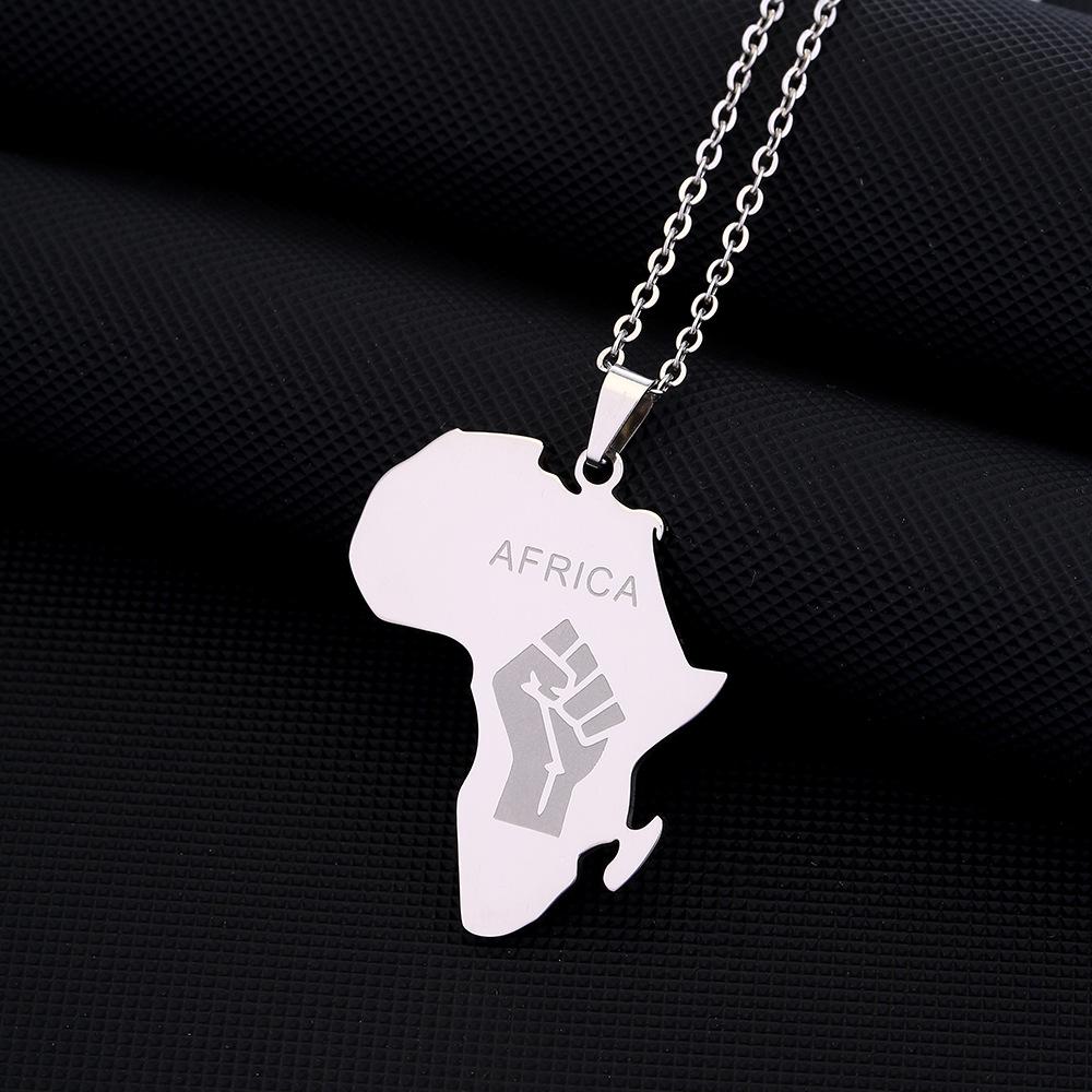 Европейско-американское парное ожерелье из титановой стали с блестящей золотой картой Африки и подвеской в виде кулака