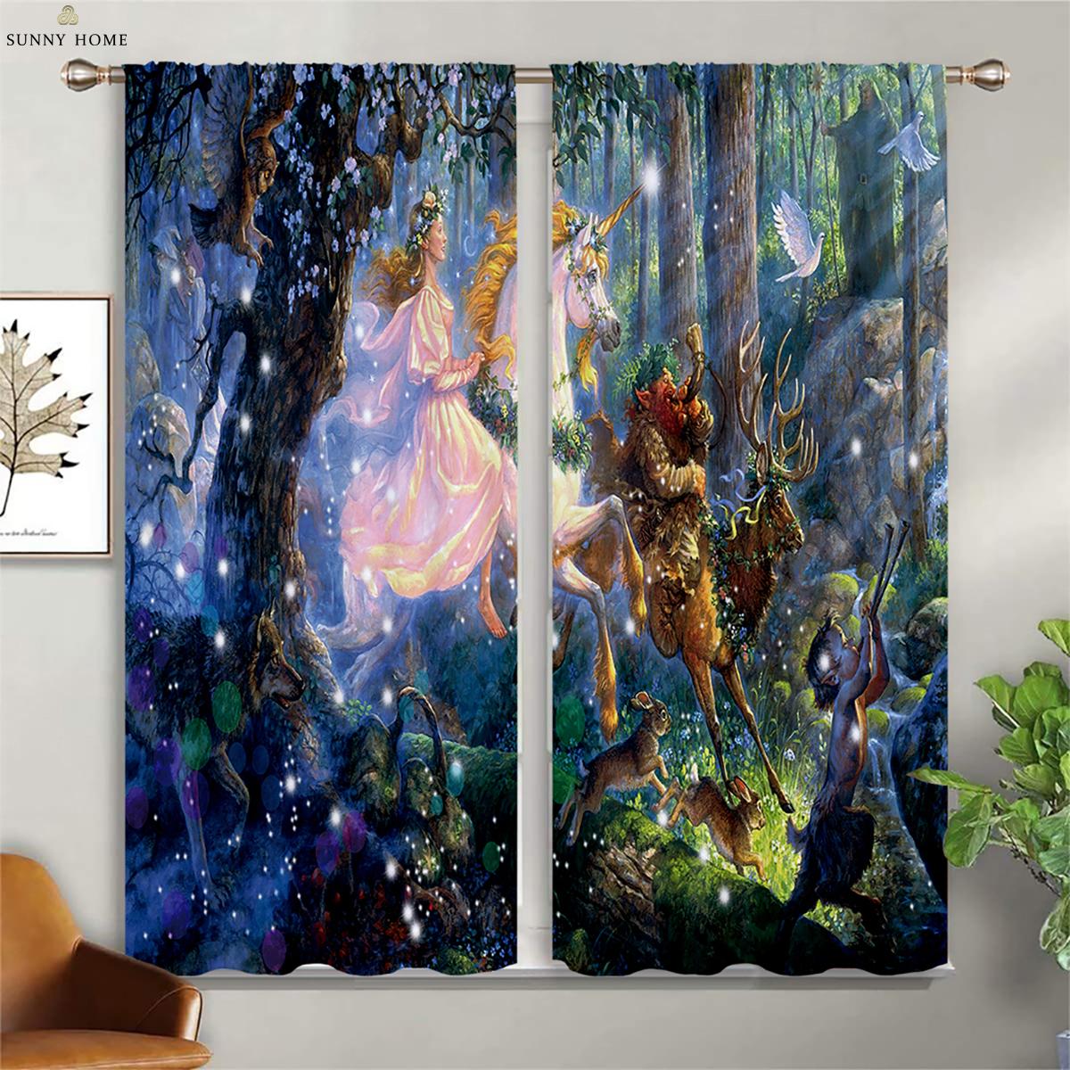 Единорог Мультфильм Шторы Детская Комната Кабинет Гостиная Кухня Карманный Карниз Для Штор Украшения Дома Оконные Шторы 2 Шт. W100xH130(CM) folio&Grommet Top