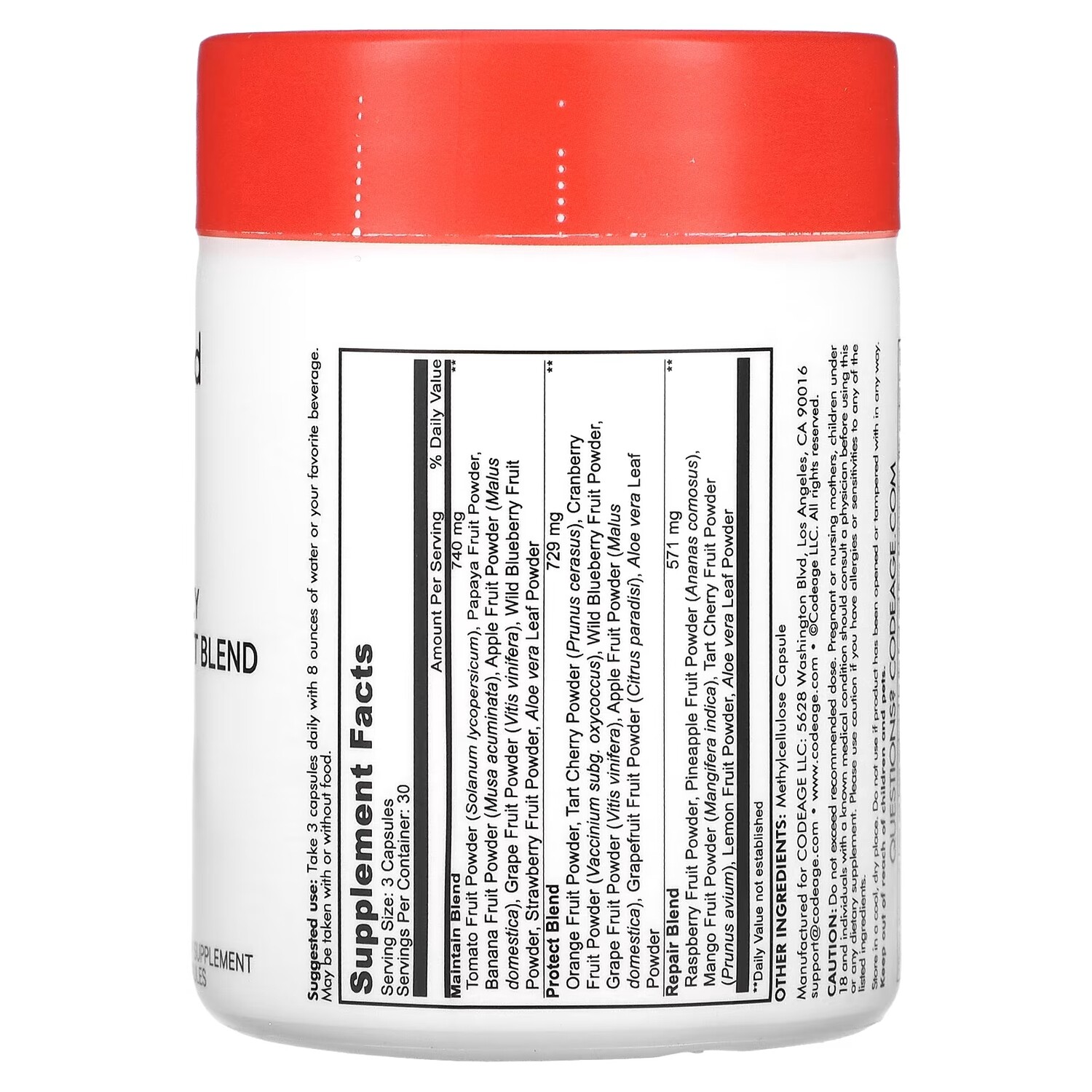 Ежедневная фруктовая смесь Codeage Instant Food Fast Fruits более 15 фруктов, 90 капсул