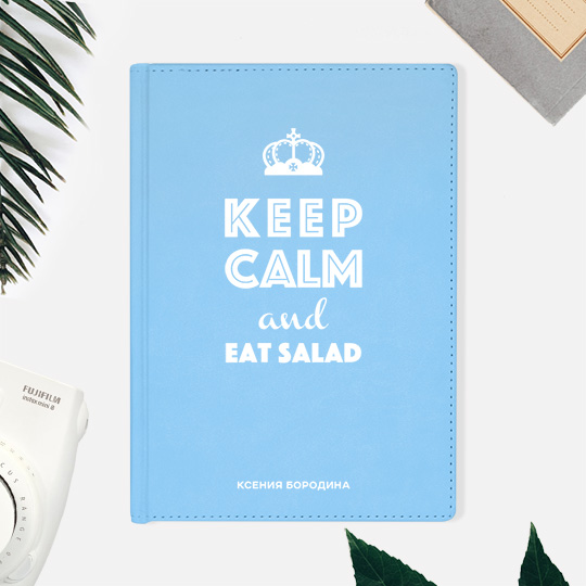 Ежедневник А5 Velvet 'Keep Calm Crown' с вашей надписью / Голубой