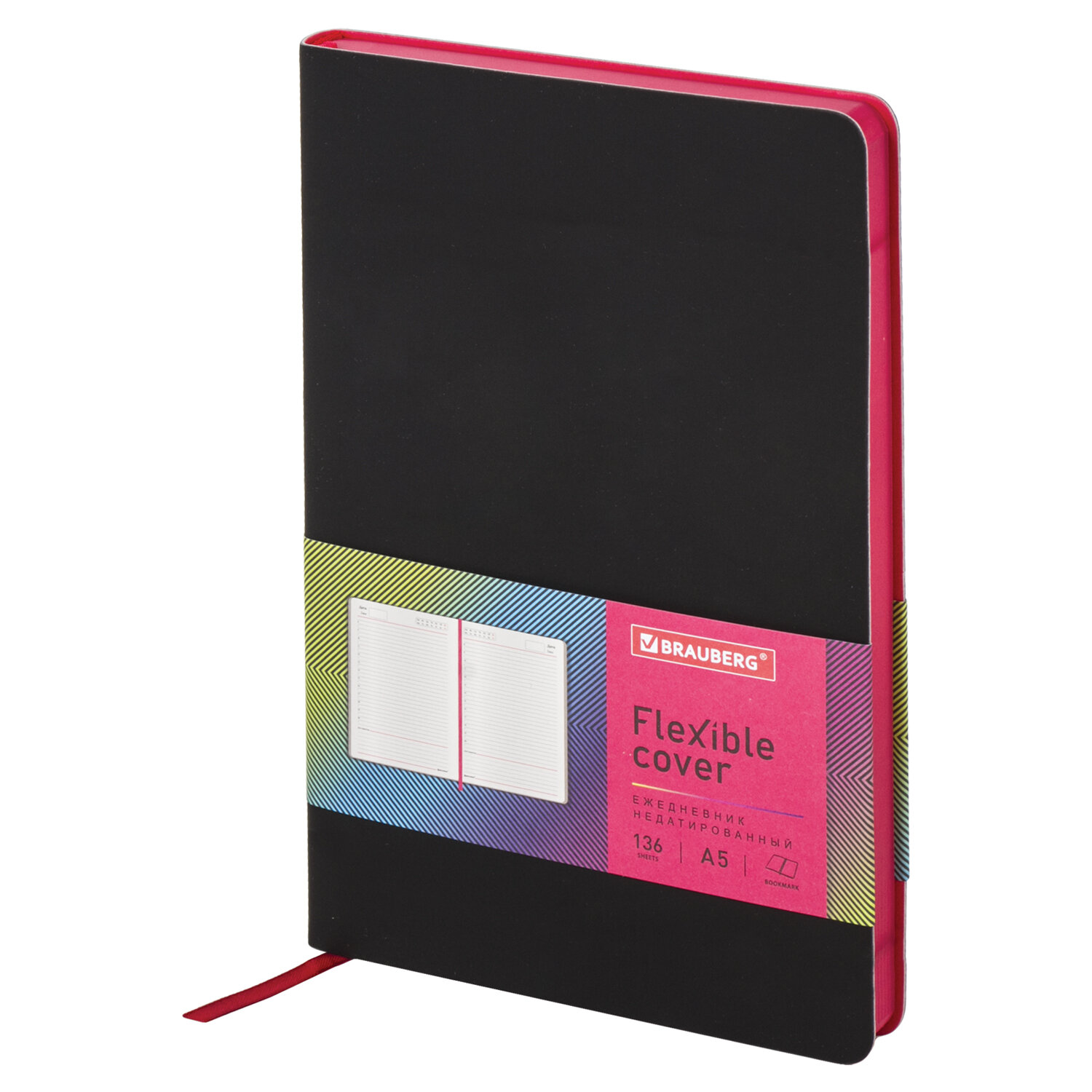 Ежедневник недатированный A5 BRAUBERG Flex, в линейку, 136 листов черный (111681)