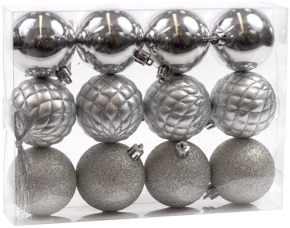елочная игрушка (набор 12 шт), цвет серебристый, диаметр 6 см