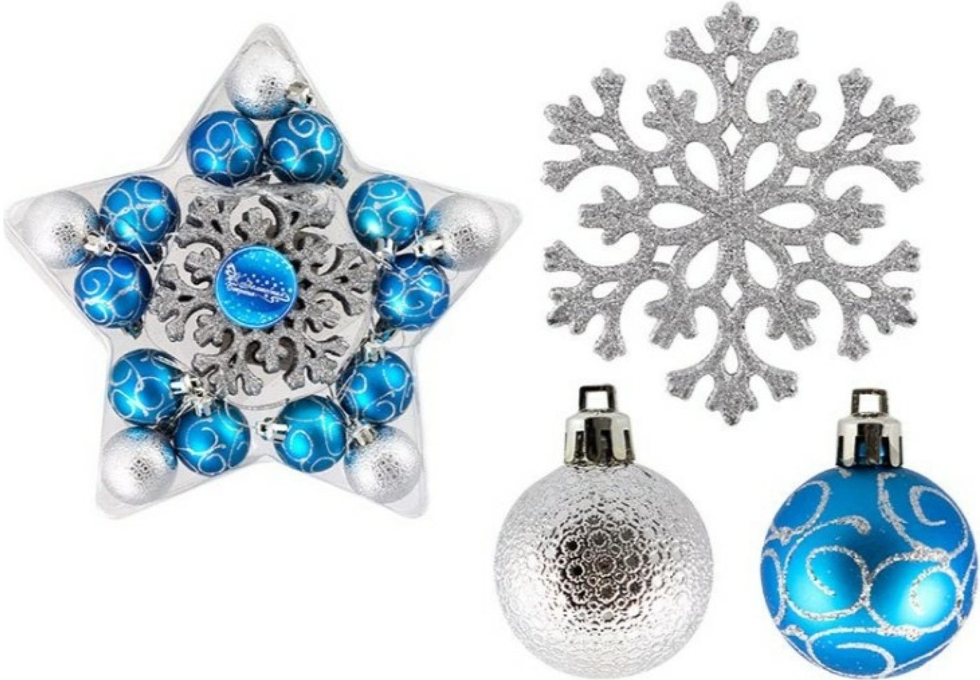 елочная игрушка (набор 25 шт), шар/снежинка, цвет серебристый/синий
