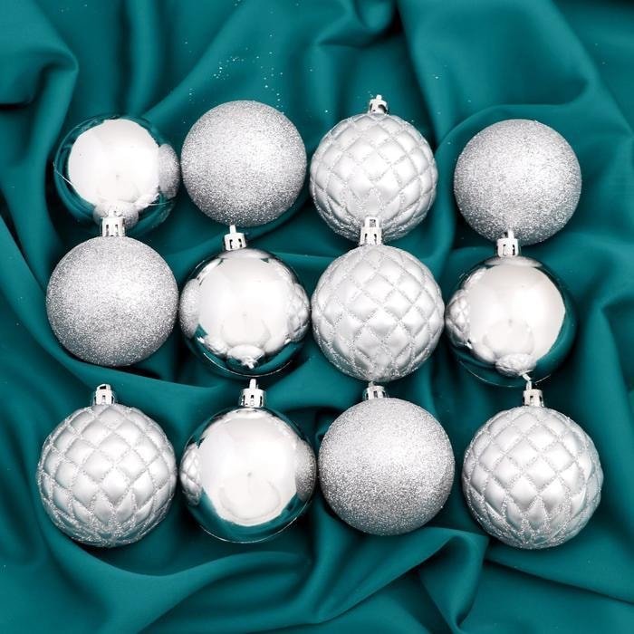 елочная игрушка (набор 12 шт), шар, цвет серебристый, диаметр 6 см