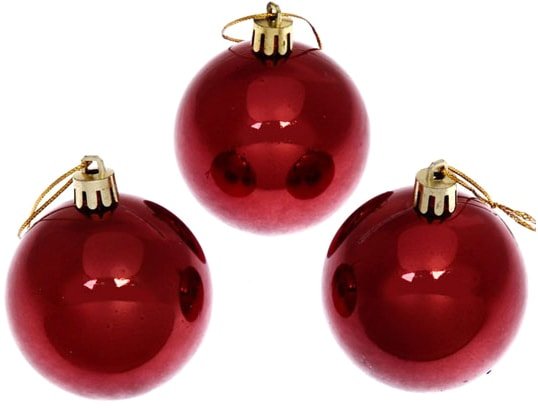елочная игрушка (набор 3 шт), шар, цвет красный, диаметр 6 см