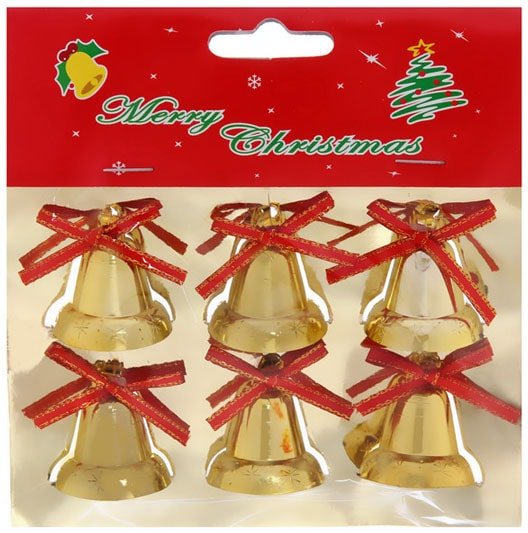 елочная игрушка (набор 6 шт), колокольчик, цвет золотистый, длина 3 см