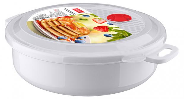 Емкость для холодильника и микроволновой печи подходит для хранения продуктов в холодильнике, а также для разогревания пищи в микроволновой печи, не снимая крышки. Поворотный клапан ускоряет процесс подогрева и предохраняет внутреннюю поверхность микроволновой печи от загрязнения. Клапан для выпуска пара имеет два положения: открыт/закрыт. Емкость имеет удобные ручки. Изготавливается из безопасного 100% перерабатываемого полипропилена, не содержит бисфенола А.