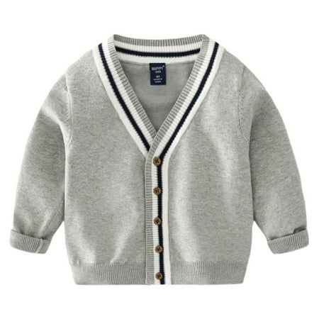 Baby Boys Buttons Down Sweaters Cardigan Toddler V-Neck Knitted Tops Outwear 2-7Y