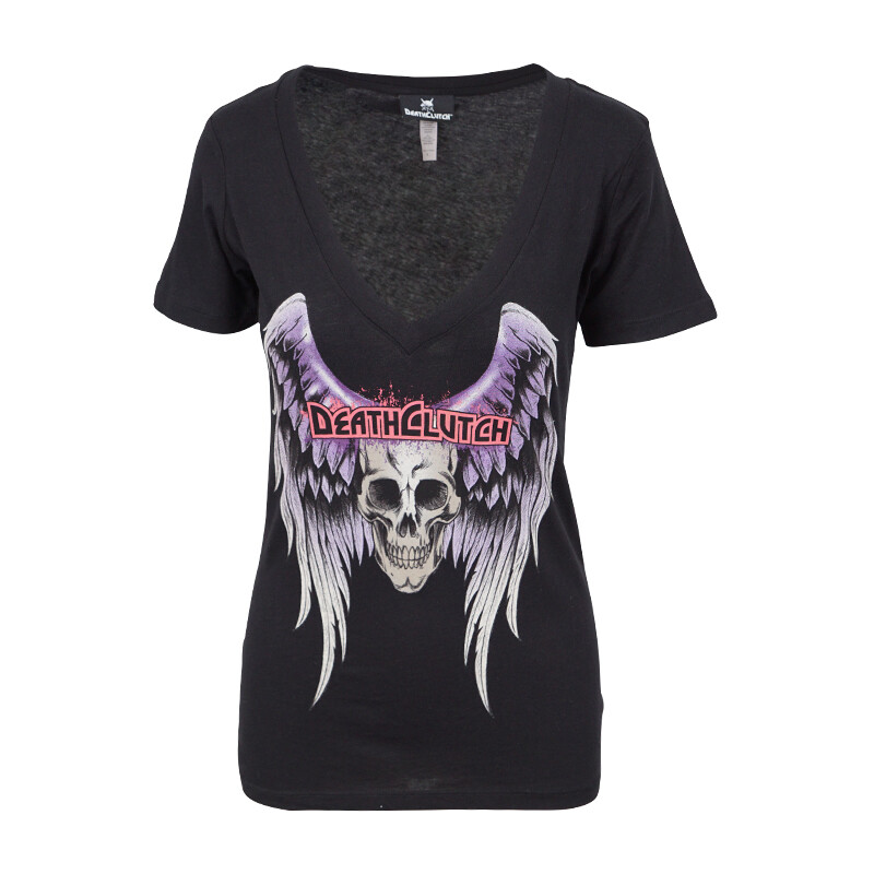 ЖЕНСКАЯ ФУТБОЛКА DEATHCLUTCH С V-образным вырезом и крыльями, Black