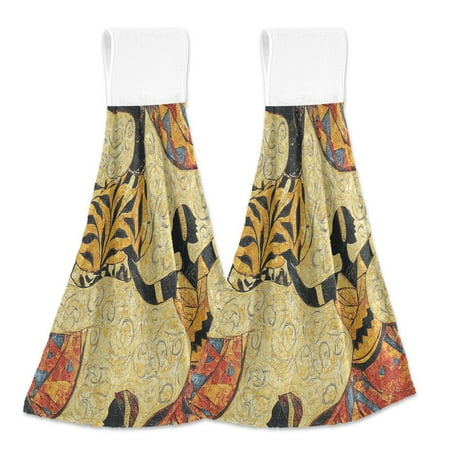 2pcs Kitchen Hanging Towels Bathroom Hanging Towels Velcro Soft Hand Towel Absorbent Tie Towels for Kitchen Toilet Tea Bar Washcloth Decor African Faces Decorative