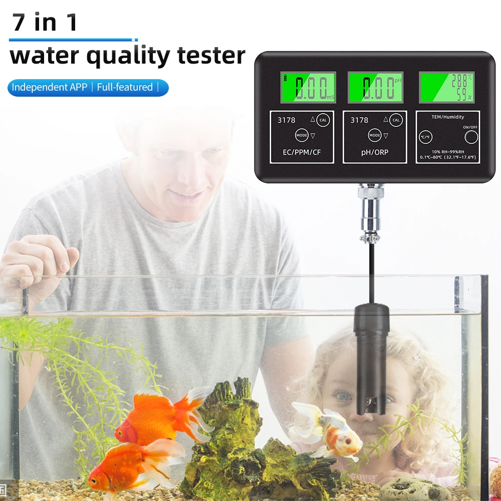 ЖК-дисплей 7 в 1 цифровой многофункциональный монитор качества воды pH/ORP/PPM/EC/CF/Теmp/измеритель влажности для аквариума бассейна рыбы
