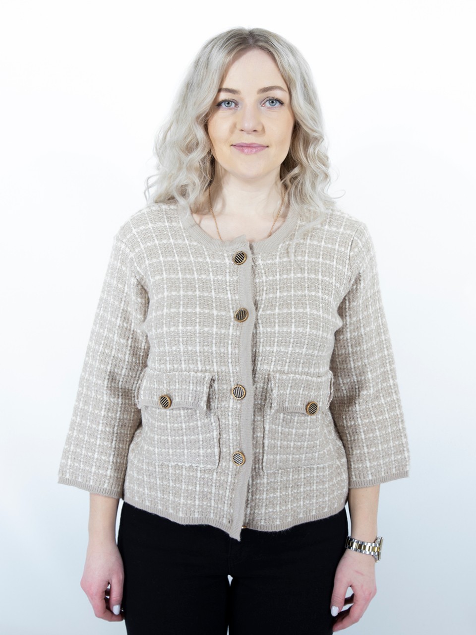 Жакет женский бежевый твидовый укороченный 1019-01-2, Жакет женский бежевый твидовый укороченный 1019-01-2 ONE SIZE