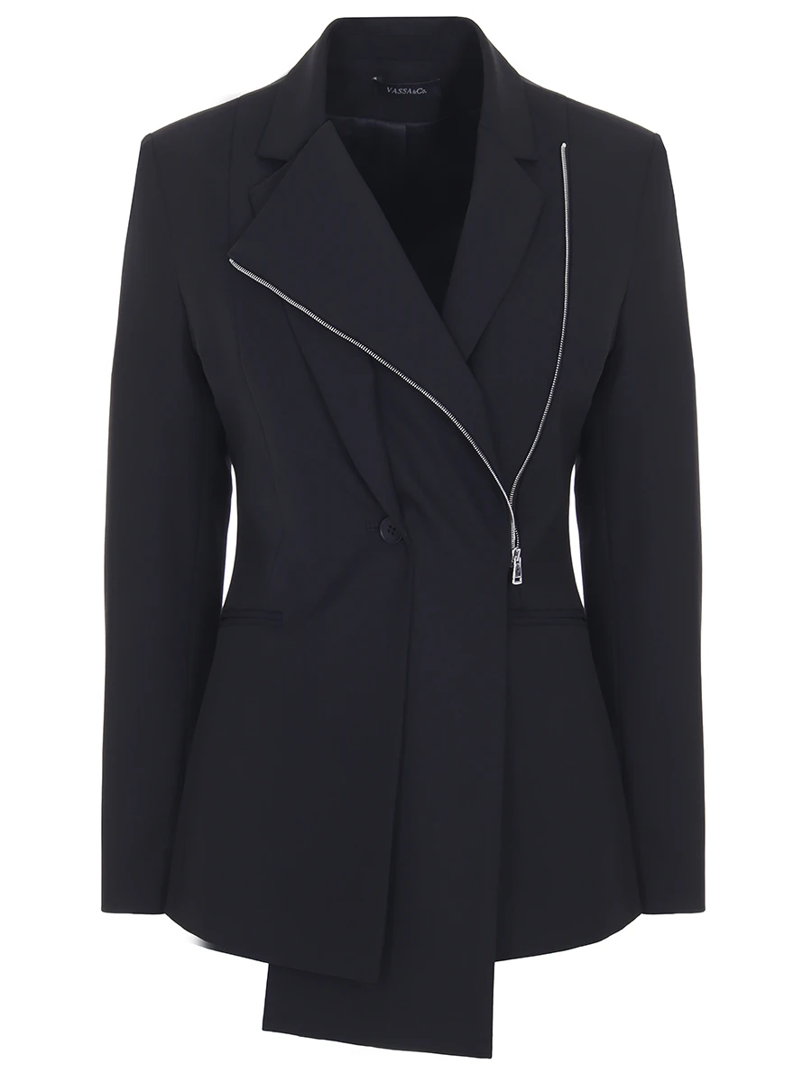 -Черный оригинальный дизайнерский жакет купажированного состава от VASSA.