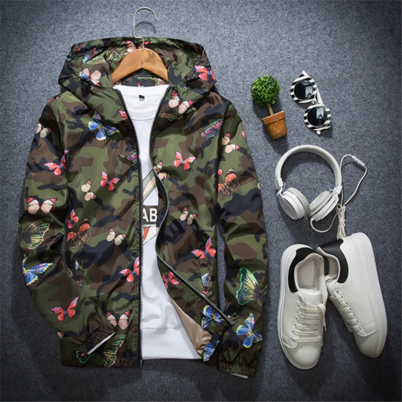 Men Bomber Jacket Thin Slim Long Sleeve Camouflage Military Jackets Hooded 2019 Windbreaker Zipper Outwear Army Brand Clothing