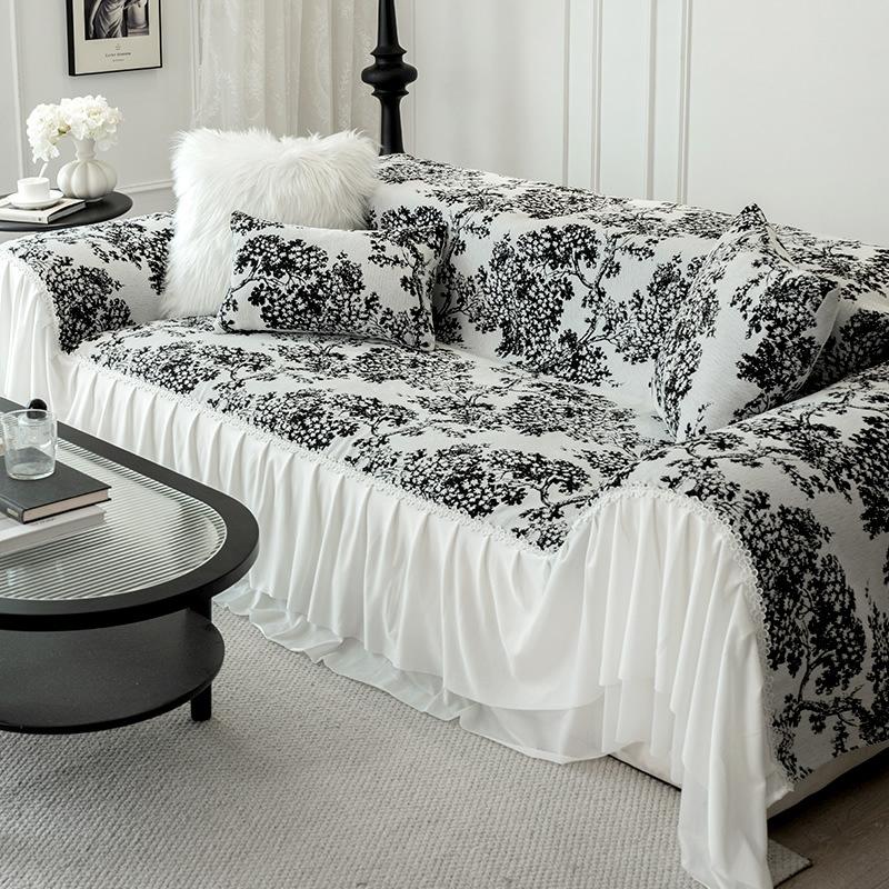Жаккардовая ткань Синель Диванное полотенце Марля Юбка Край Цветочный Нескользящий Гостиная Украшения Диван Подушка Чехол Для Дивана Домашний Декор 180x130cm 1pc