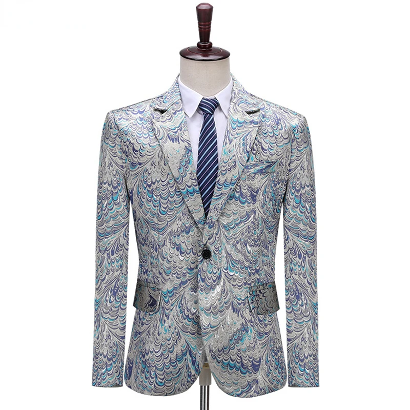 Жаккардовый пиджак мужской, на одной пуговице, с лацканами