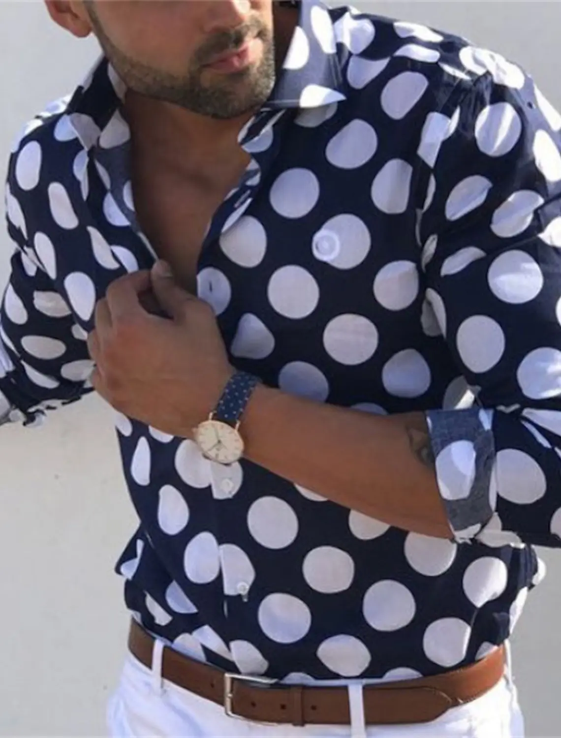 Мужская рубашка, летняя гавайская рубашка, рубашка на пуговицах с длинным рукавом и графическим рисунком в горошек, уличная уличная одежда на пуговицах