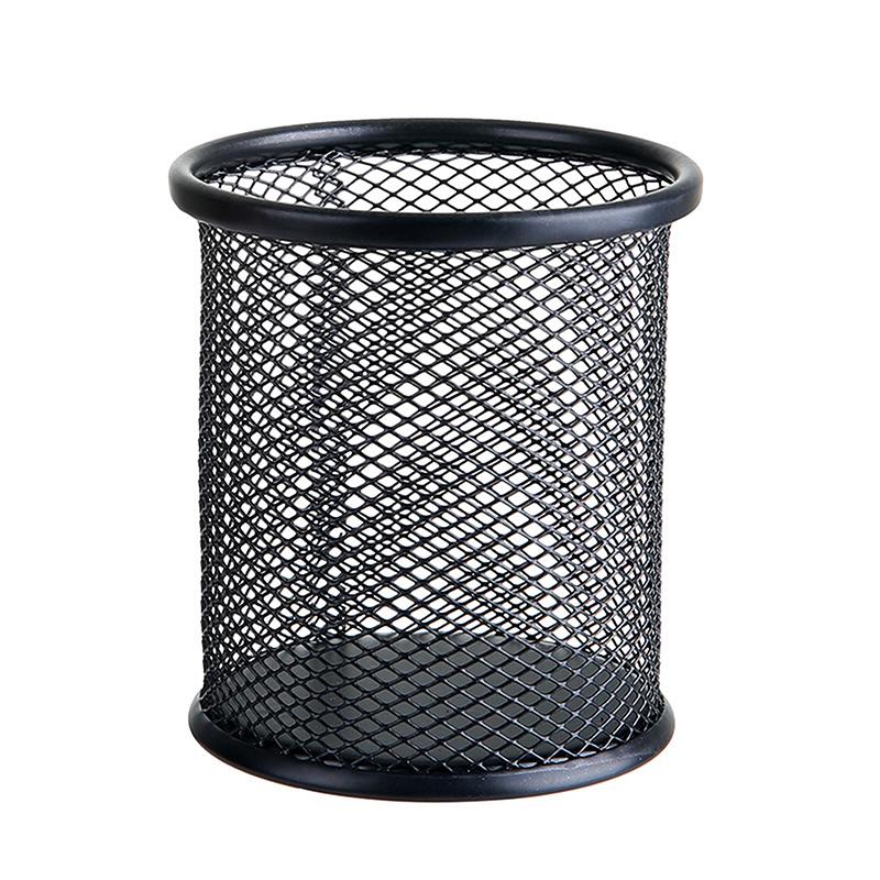 Железный держатель для ручек, полое настольное ведро для хранения канцелярских принадлежностей для студентов, многофункциональный офисный держатель для ручек черного цвета, круглый квадратный Round чёрный