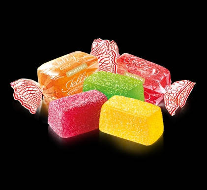 Мікс желейних цукерок з додаванням концентрованих фруктових соків зі смаками лимону, апельсину, яблука, полуниці, малини, груші, посипані дрібнокристалічним цукром.