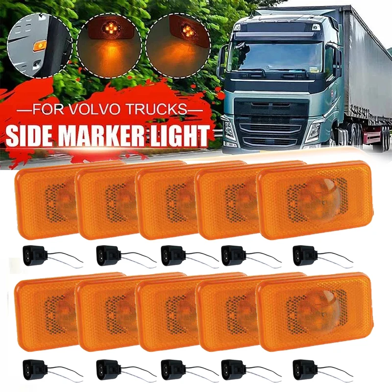 Желтая желтая светодиодная боковая лампа 10x24 В, фонарь со штекером для провода для Volvo FH & FM DAF LF45 Renault 20789440 20398660
