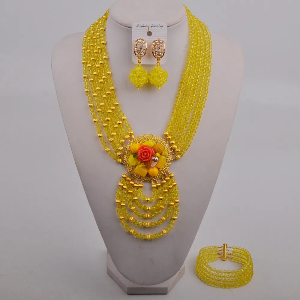 Желтый Африканский бисер ювелирный набор женский костюм ожерелье свадебный набор