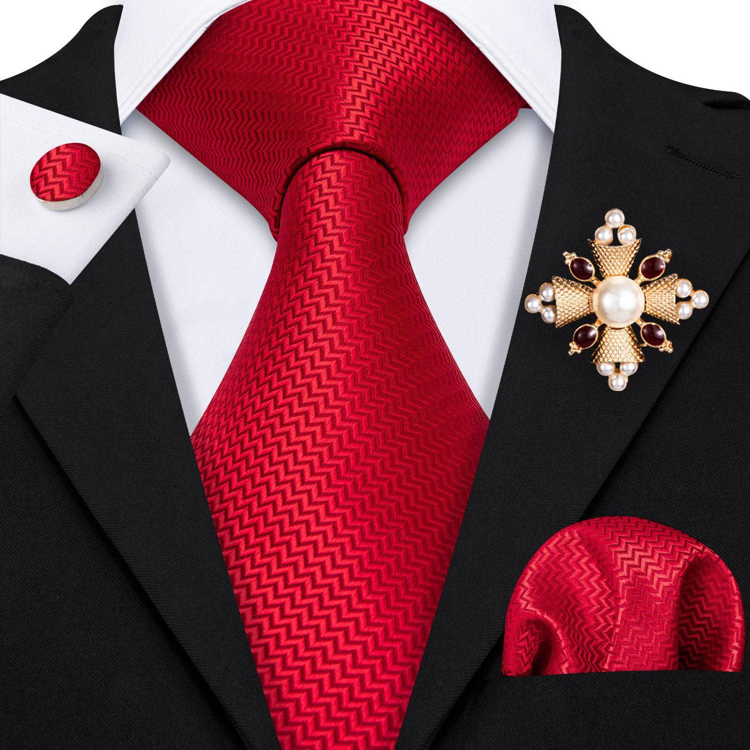 Жемчужная брошь с галстуком для мужчин в полоску, золотой, черный галстук, носовой платок, запонки, подарочный формальный набор N-5198