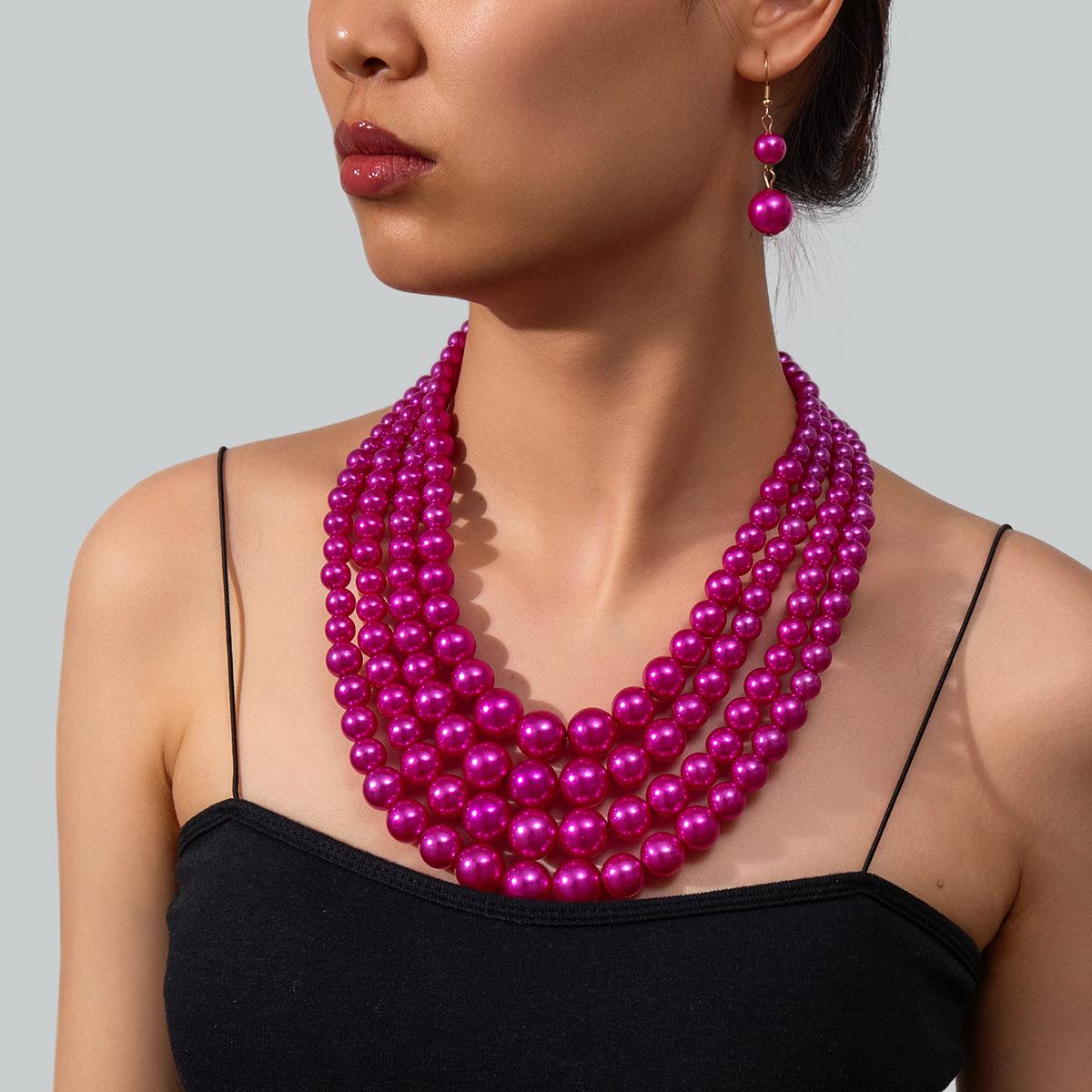 Жемчужная мода преувеличенное женское многослойное ожерелье с жемчугом на ключице, универсальный комплект из серег и ожерелья