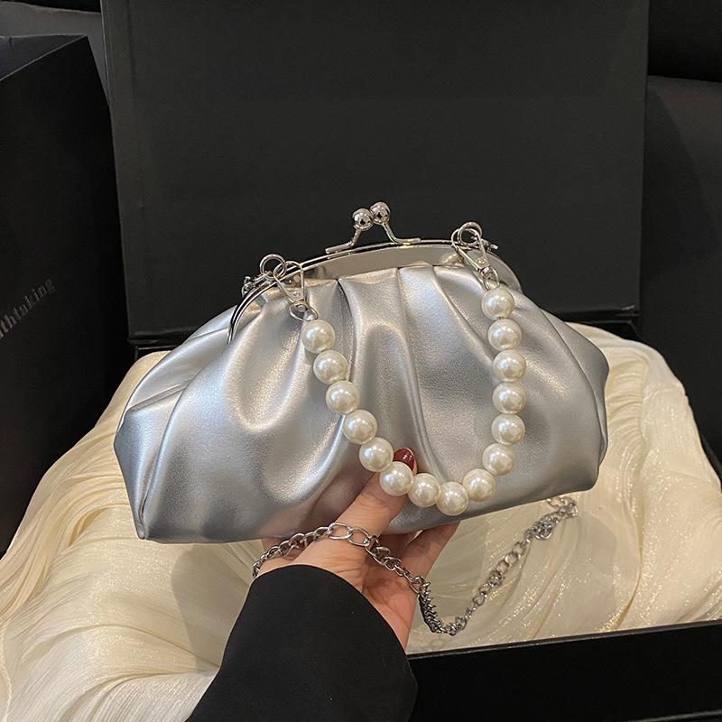 Жемчужная цепочка сумочка 2025 лето новая нишевая плиссированная сумка-мессенджер большая вместимость маленькая изысканная сумка-клатч серебряный