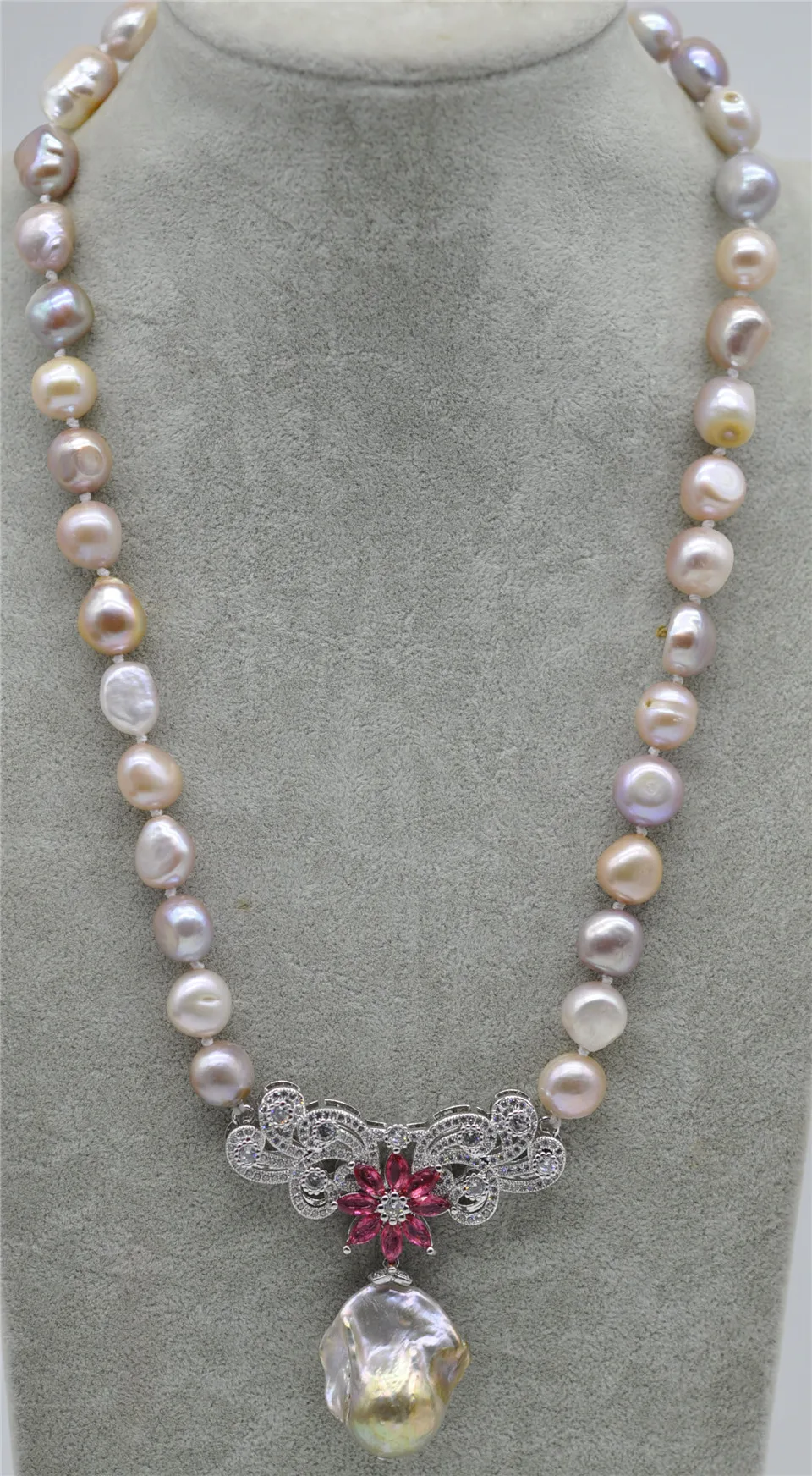 Жемчужное колье с фианитом, 19 дюймов, 12-13 мм