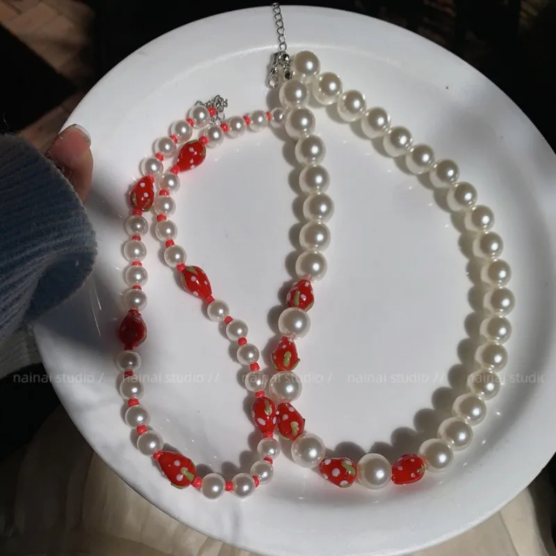 Жемчужное ожерелье с клубничным жемчугом, нишевая дизайнерская цепочка с ощущением ключицы, маленькая свежая цепочка на шею