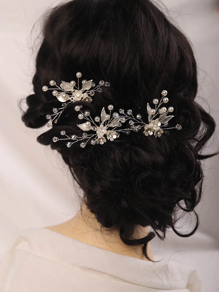 Жемчужные стразы, Цветочные заколки для волос невесты, украшенные кристаллами, свадебные аксессуары для волос, украшения для волос тиары