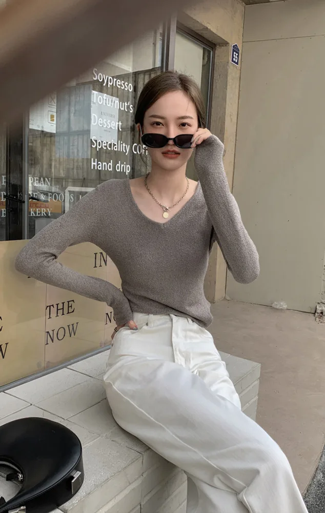 Женская Асимметричная рубашка с V-образным вырезом и длинным рукавом