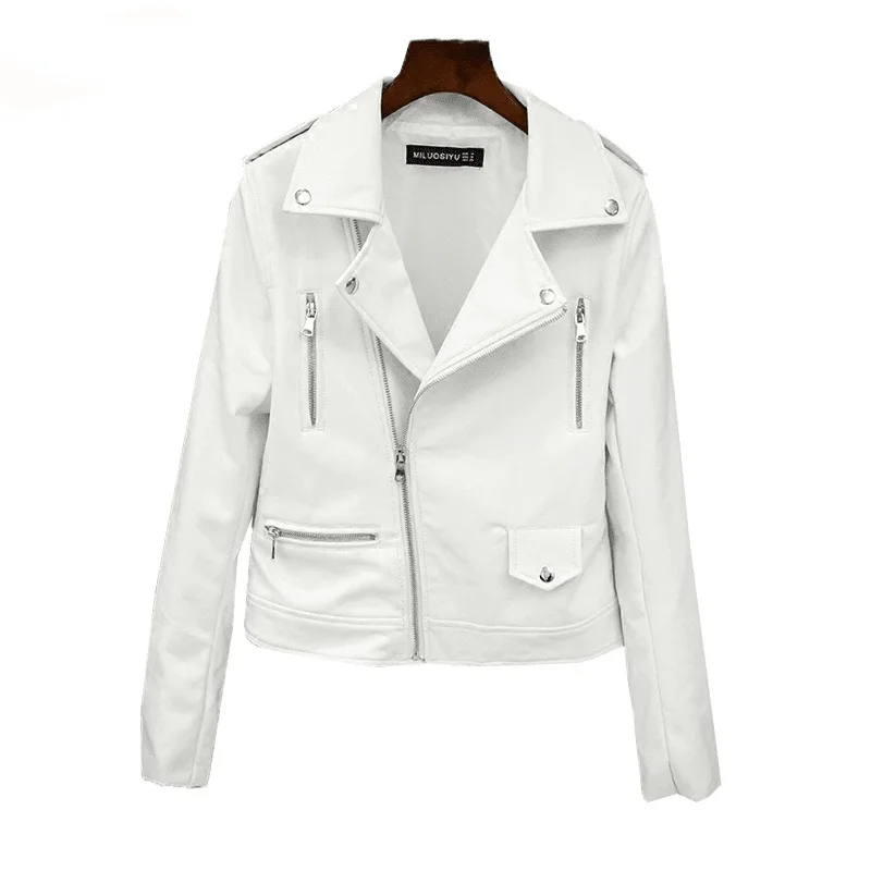 Женская Байкерская кожаная куртка, Повседневная белая байкерская куртка из мягкой искусственной кожи в стиле панк, весна-осень 2021