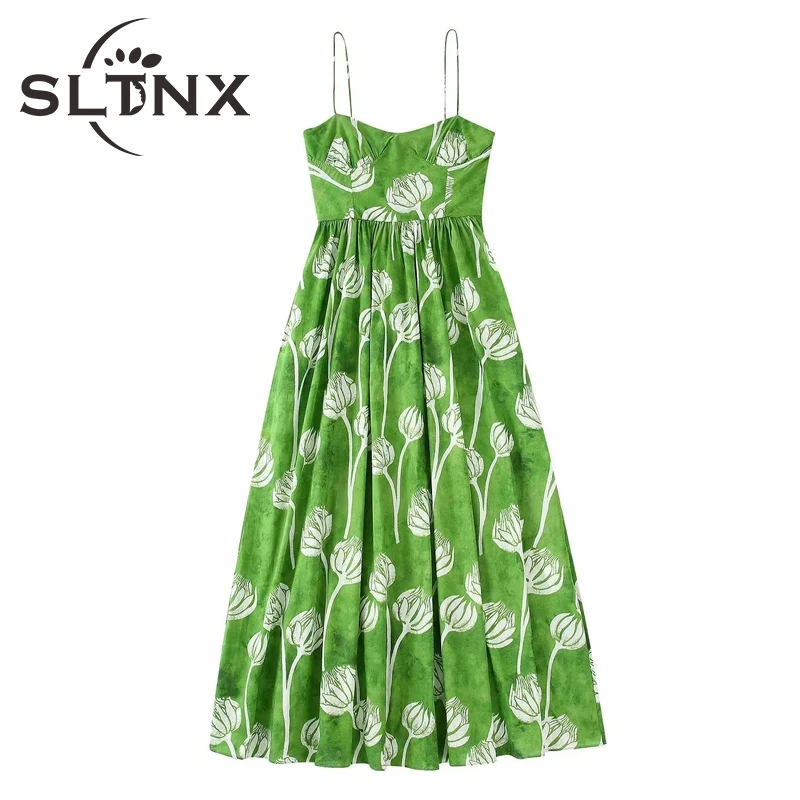 SLTNX Dresses for Women 2022 Print Dress Female Sexy Summer Backless Long Dresses Ladies Casual A-Line Loose Folds New In Dress