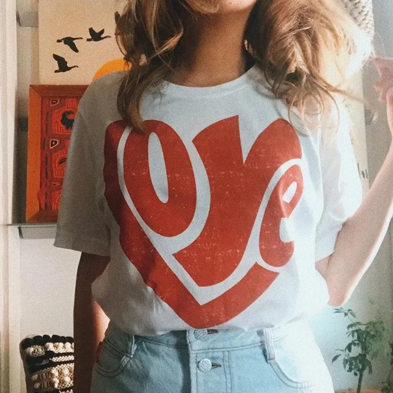 Женская Винтажная Футболка Cute More Love, белая хлопковая Повседневная футболка с рисунком красного сердца в стиле 70-х, лето