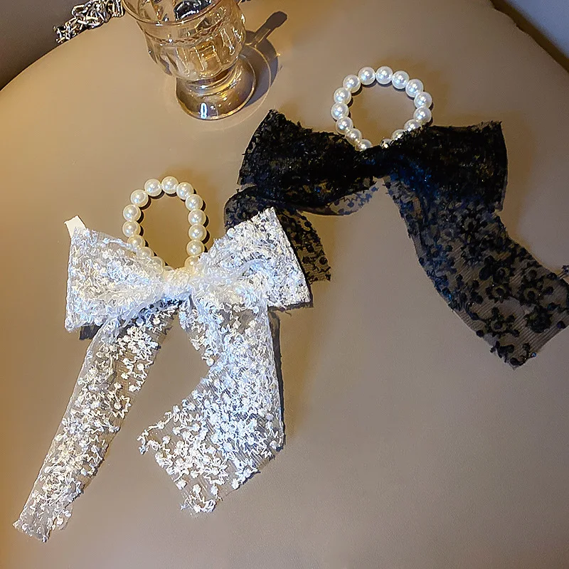 Женская Жемчужная Повязка на голову с бантом в Корейском стиле, резинки для волос, заколки, головной убор, держатель для конского хвоста, пов...