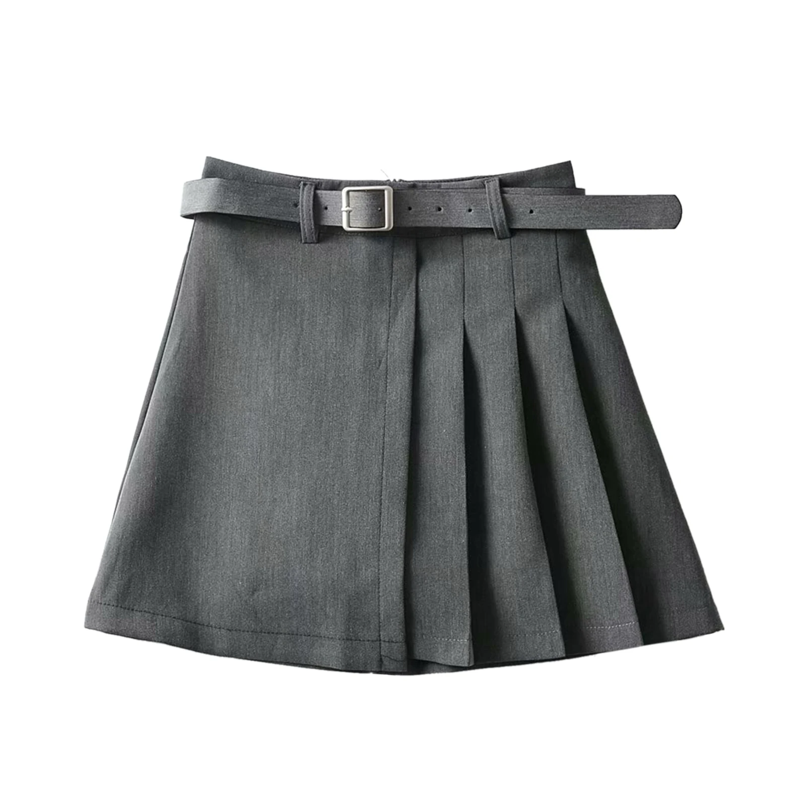 Женская Классическая однотонная юбка, модная плиссированная трапециевидная короткая юбка с высокой талией и поясом