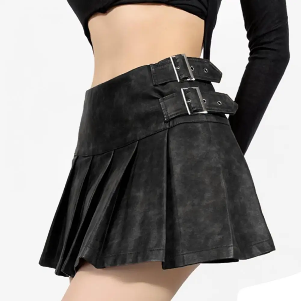 Женская Кожаная Мини-юбка с поясом, летняя трапециевидная юбка с высокой талией, уличная одежда