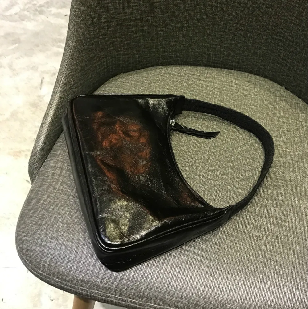 Женская Кожаная мини-сумка, в стиле ретро, с масляным воском, черная сумка, женская сумка-тоут, модные однотонные сумки для женщин, 2019