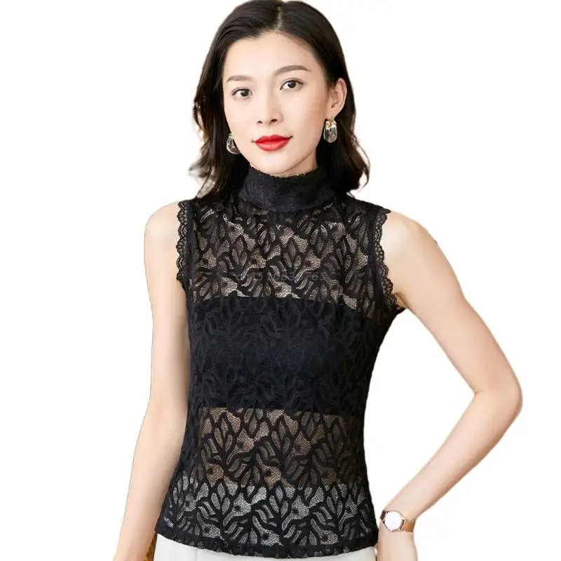Женская Коралловая кружевная блузка без рукавов со съемным воротником и ложным воротником