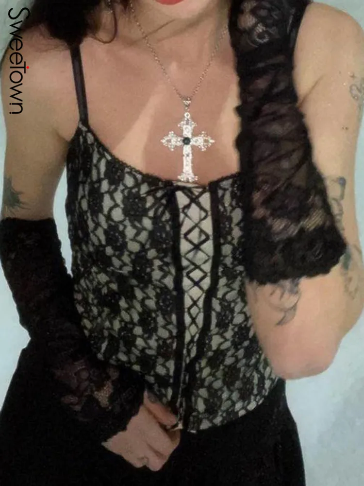 Женская Кружевная футболка с открытыми плечами и перчатками на завязках