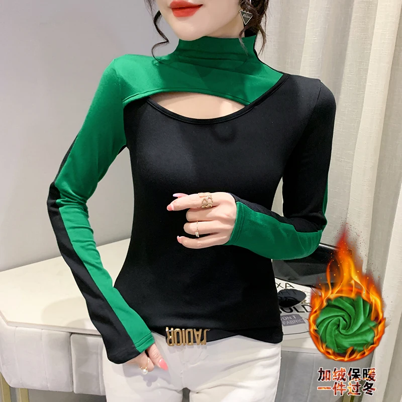 Женская Облегающая водолазка, обтягивающая эластичная хлопковая Футболка с вырезами в уличном стиле, теплый топ для зимы