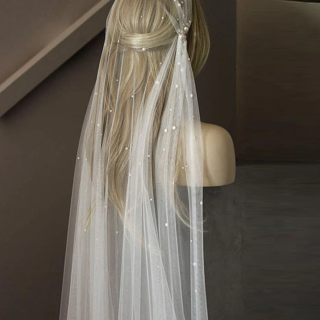 Женская Однослойная свадебная фата, свадебная фата с искусственным жемчугом длиной до локтя, свадебные аксессуары для невесты и подружек н...
