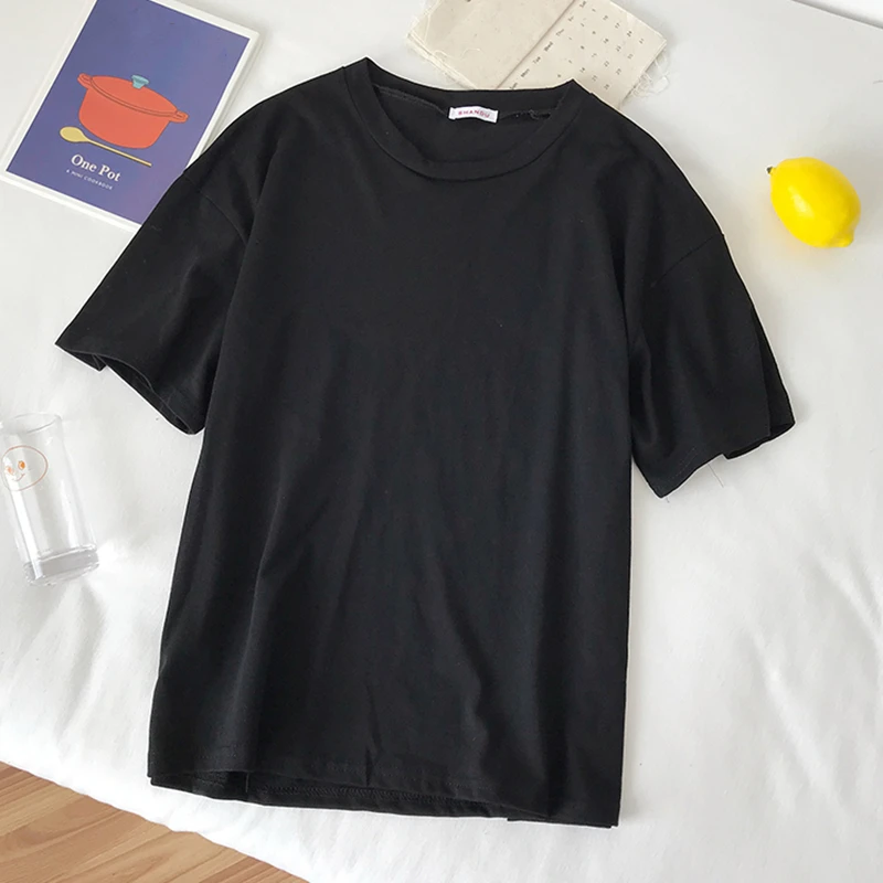 Женская Однотонная футболка из хлопка, с коротким рукавом, с круглым вырезом, 2021