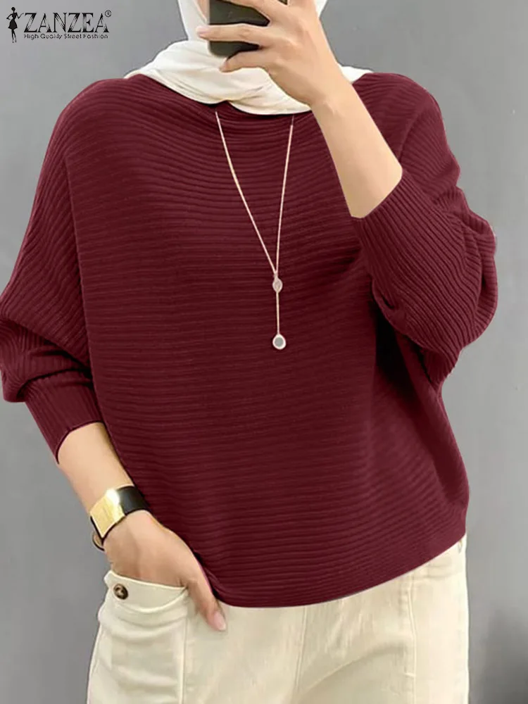 Женская Осенняя блузка, мусульманский хиджаб, топы ZANZEA, Весенняя мода, блузы с длинным рукавом и круглым вырезом, Рамадан, Повседневная однотонная Свободная рабочая рубашка