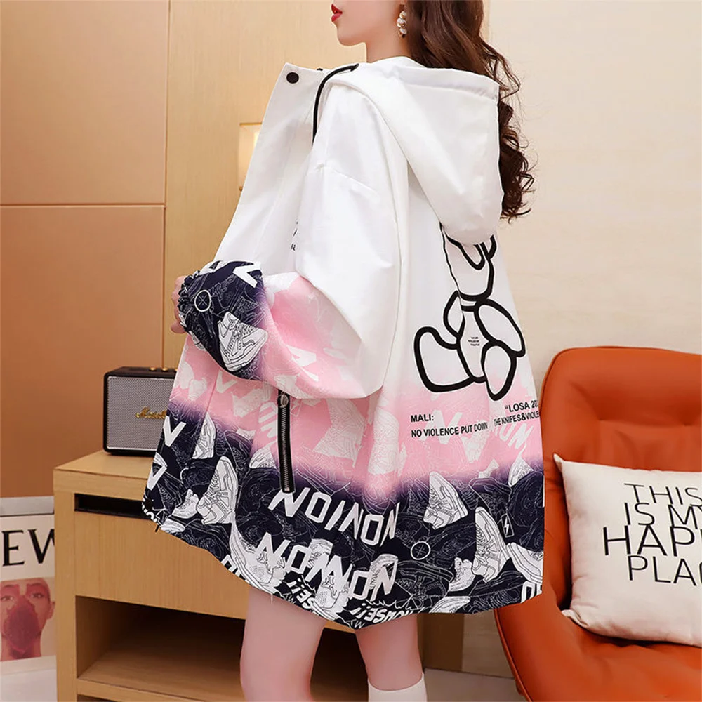 Женская Осенняя толстовка с капюшоном и принтом медведя