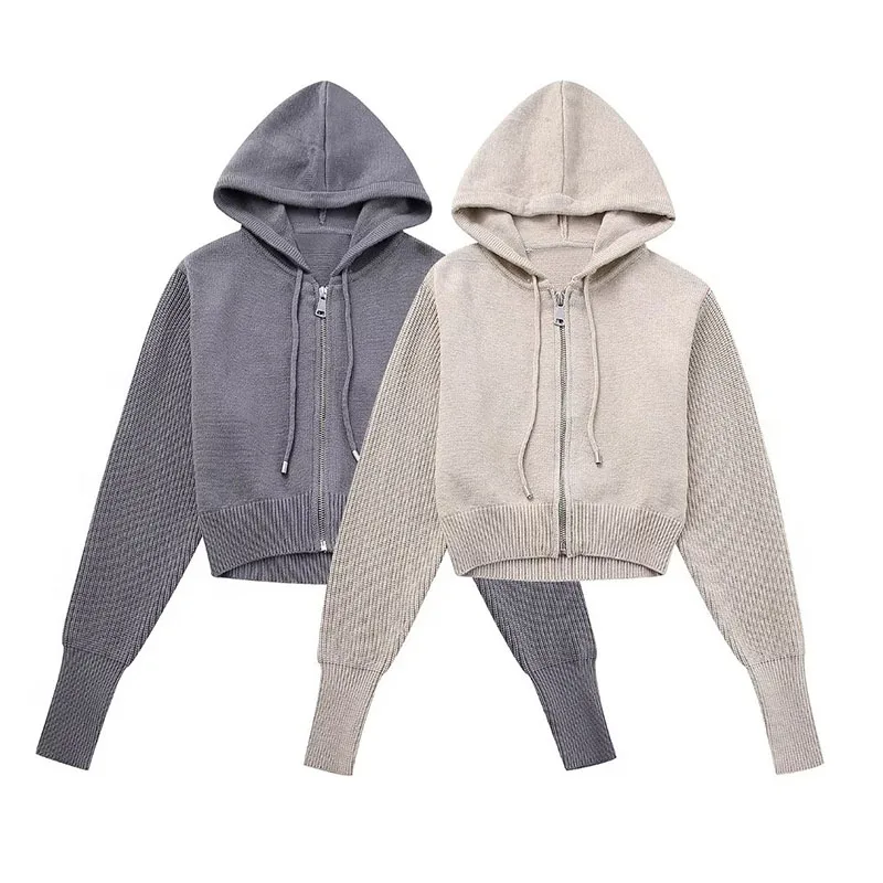 Женская Осенняя трикотажная куртка с капюшоном и длинным рукавом