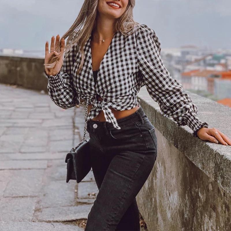 Женская Повседневная Блузка в клетку, элегантные топы с длинным рукавом, офисная одежда для работы, праздвечерние блузки, топы, 2021