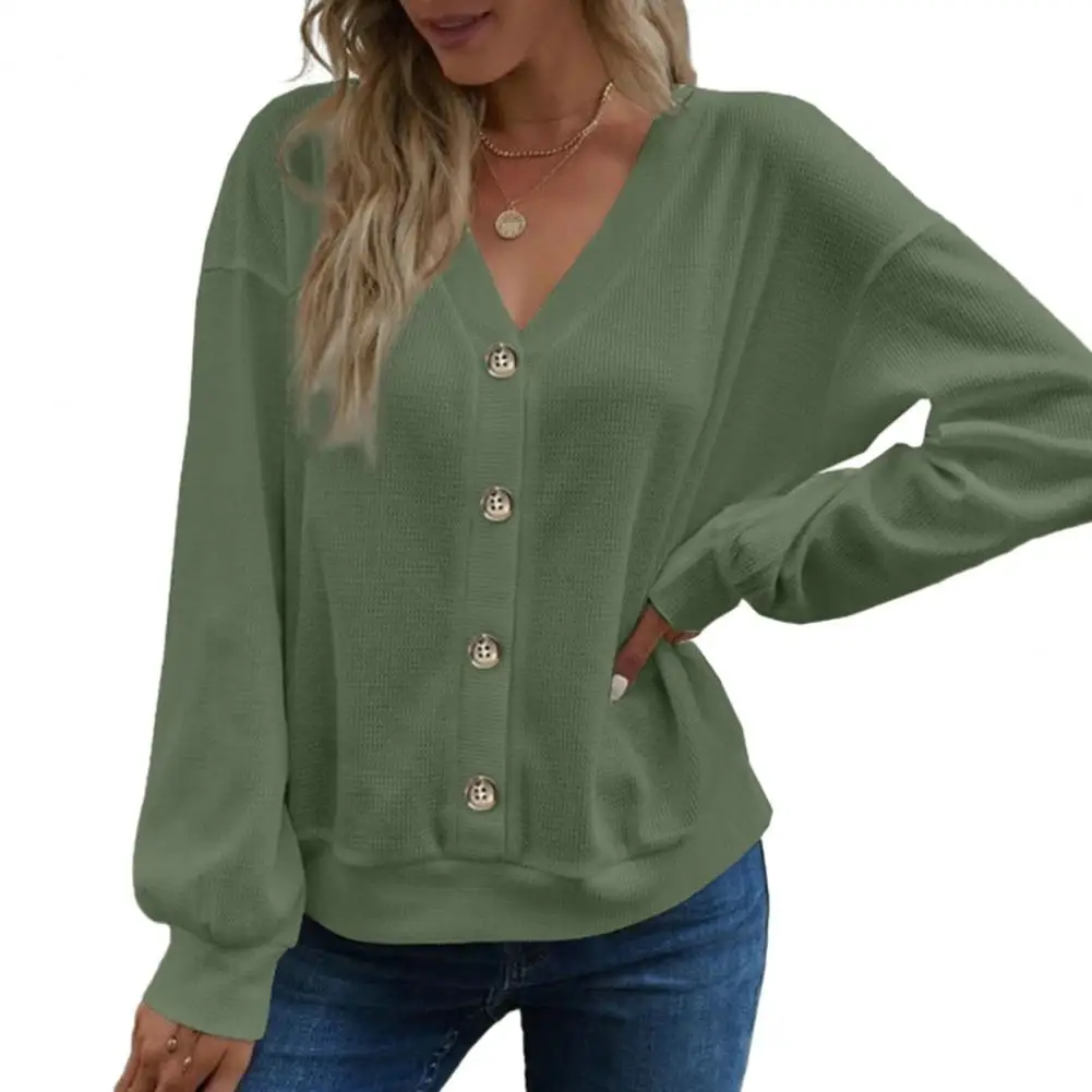 Женская Повседневная Блузка на пуговицах, с V-образным вырезом и длинными рукавами